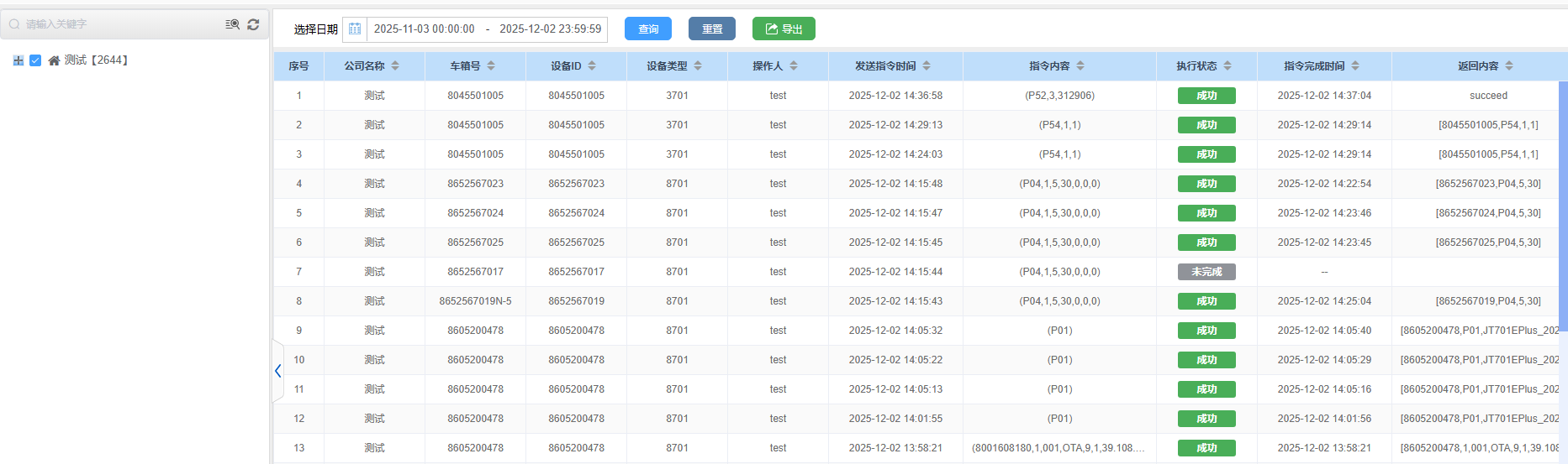 • 执行查询:点击「查询」按钮,系统自动筛选并在列表中展示符合条件的指令下发记录。