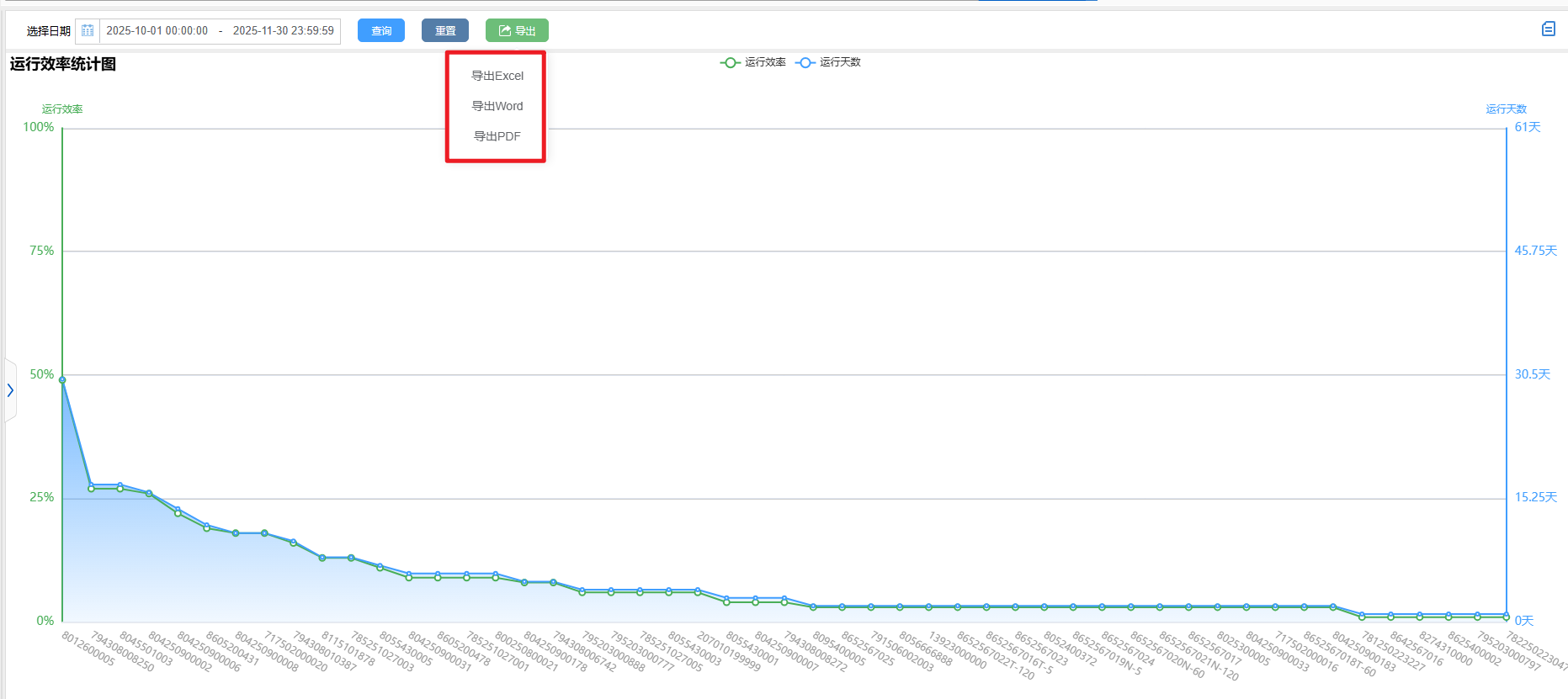 - 设置时间范围:点击日期选择框,配置需统计的运行效率时间区间。