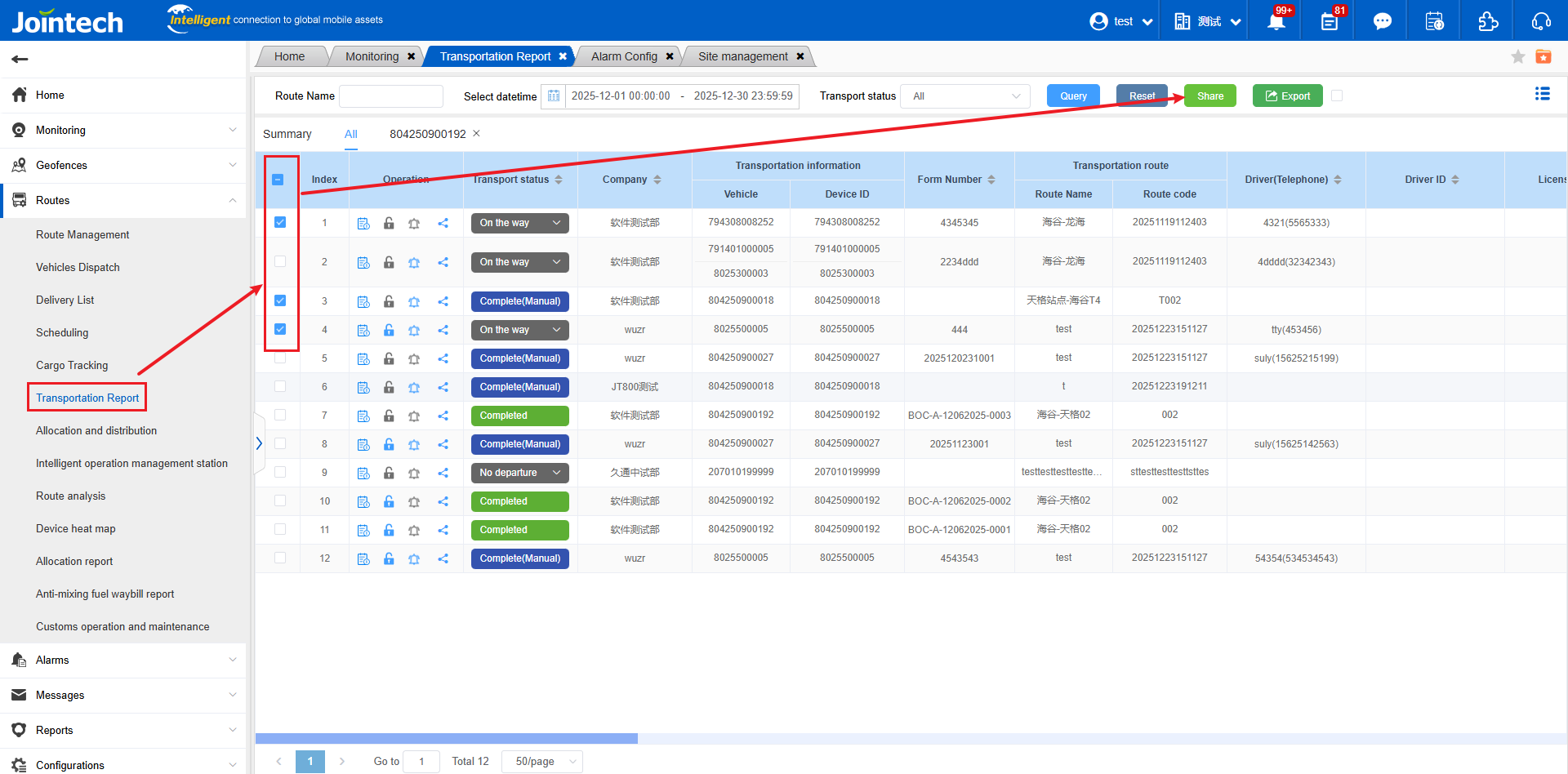 The transportation report is used to count all the data of the dispatched vehicles;