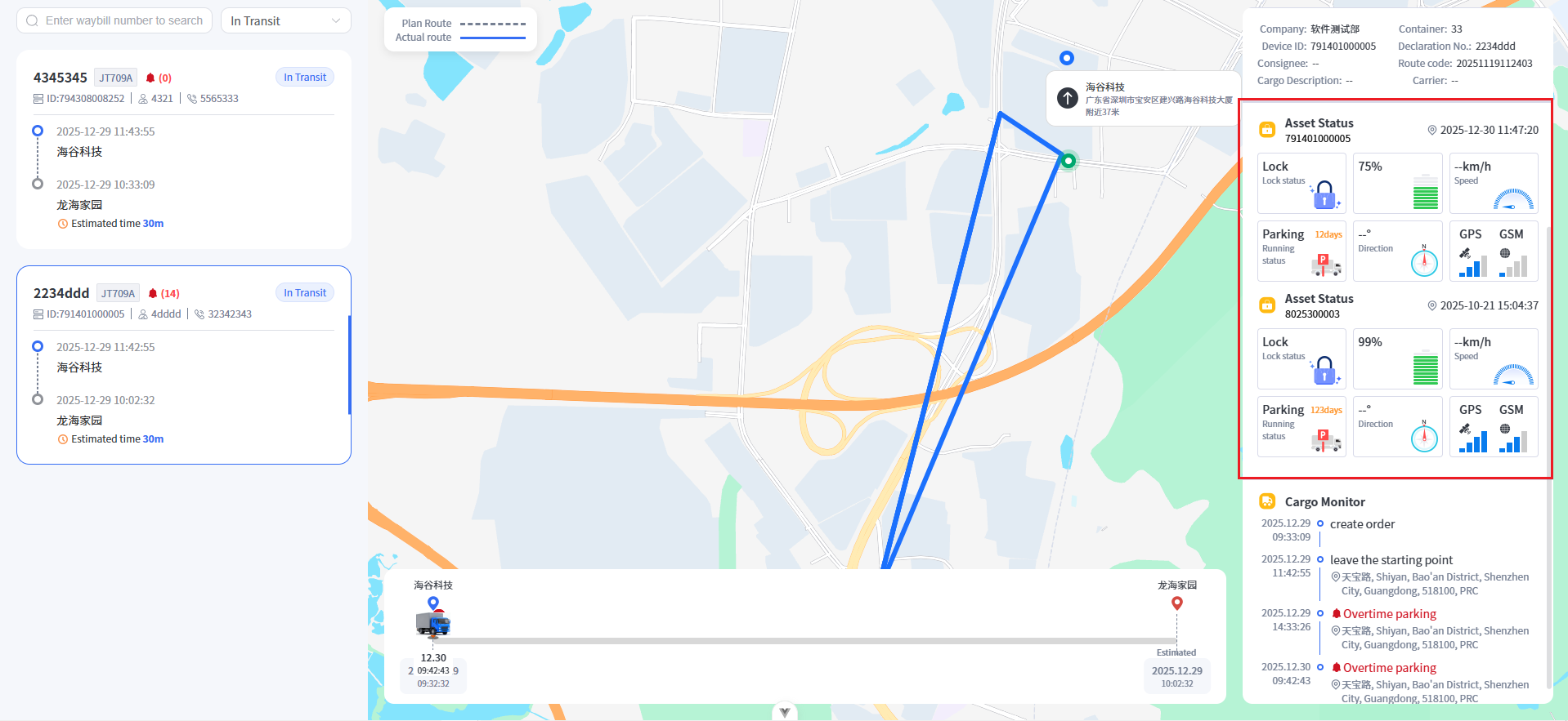 Map Monitoring: The map displays the real-time geographical location of the vehicle/goods corresponding to the waybill. Clicking on the marker on the map