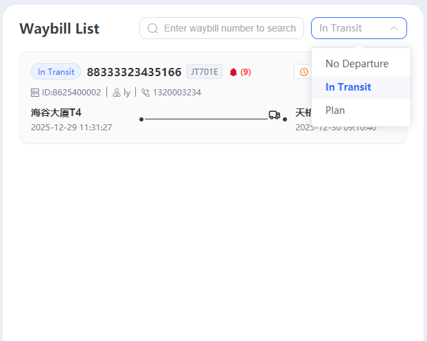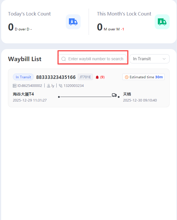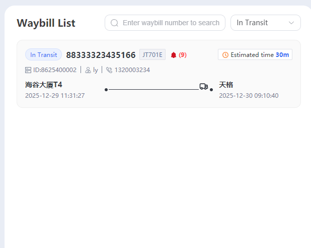 Search Waybills: Enter the waybill number in the “Please enter the waybill number to search” input box to accurately locate the target waybill;