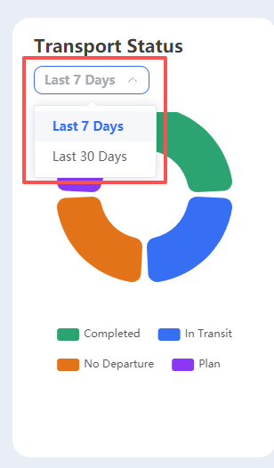 Statistical Analysis: Waybill Status Percentage (Right Side): Visually view the percentage of “Completed / In Transit / Not Dispatched / Scheduled Orders” using a pie chart. Waybill Distribution Chart (Bottom): View the trend of waybill quantity changes over the most recent 7/15 days (adjustable time range) using a line chart to assist in operational decision-making.