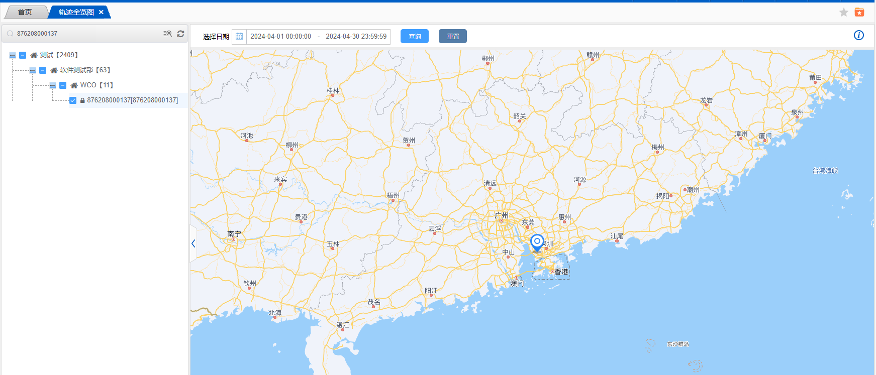 打开轨迹全览图界面后,您可以根据需求进行多选或单选操作来查看不同车辆的轨迹。