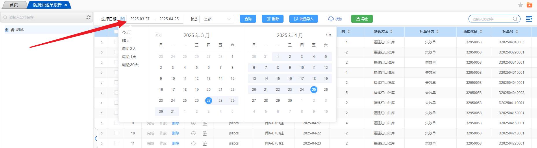 进入防混油运单报告页面:打开系统,找到并点击 “防混油运单报告” 功能模块,进入相应操作界面。