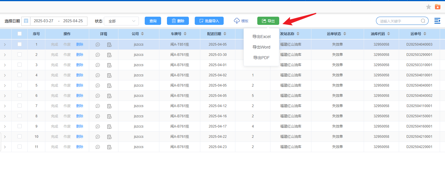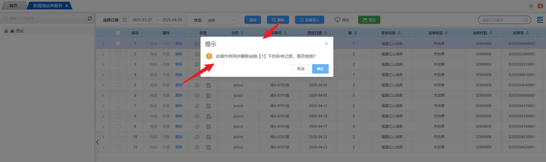 删除运单:在运单列表中,勾选想要删除的运单记录(可多选),然后点击 “删除” 按钮,按提示确认操作,即可移除所选运单。需注意,删除操作不可逆,请谨慎操作。