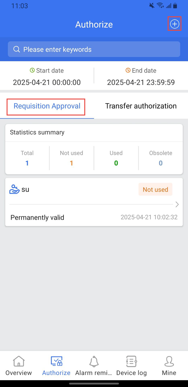 Click the Add Authorization icon in the upper right corner to enter the new page.