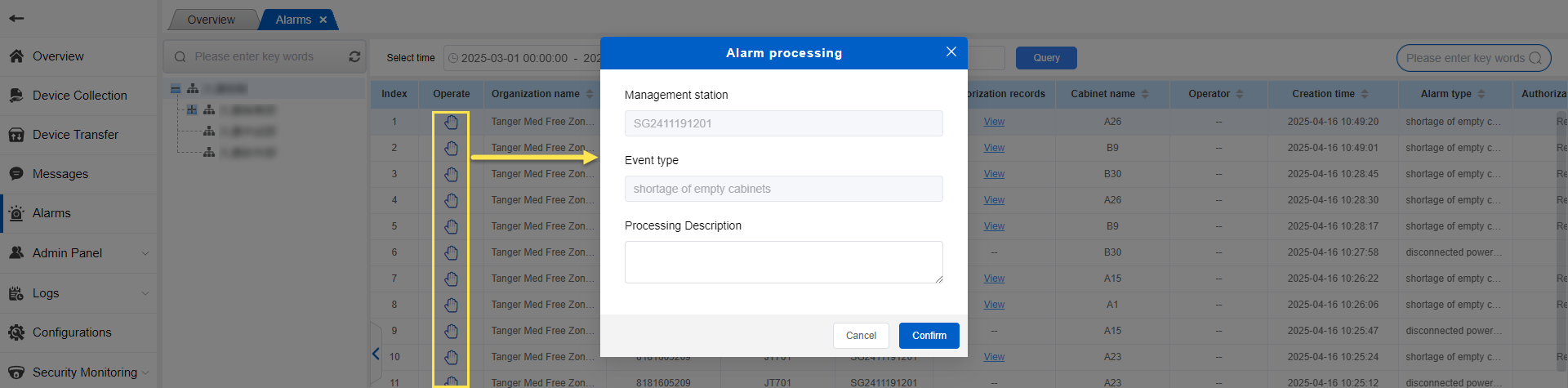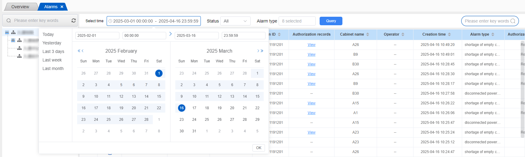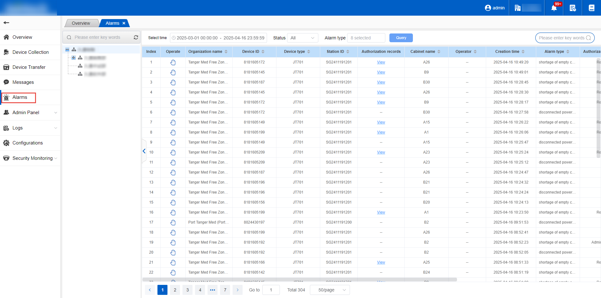 The alarm reminders include the disconnection of power supply, connection of power supply, manual fault reporting and other alarm reminders of the intelligent operation management station.